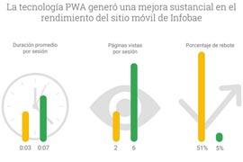 Infobae contaba con un importante tráfico móvil, pero las cifras de interacción no seguían el mismo patrón. Con este reto en mente, se descubrió que la velocidad de carga era un factor determinante a la hora de mejorar la experiencia de sus lectores y lograr retenerlos. Para mejorar el rendimiento y la navegación móvil, se implementó una Progressive Web App (PWA).
