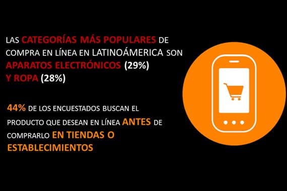 Las categorías más populares de compra en línea en América Latina son aparatos electrónicos -29 por ciento- y ropa -28 por ciento-.