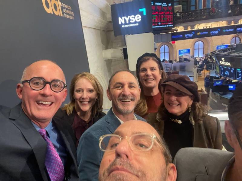 En diciembre me uní a Marlo Thomas, Gordon Bowen, Esi Eggleston Bracey, Susan Fowler Credle, David Droga, Tim Ellis y algunos líderes de la AAF para tocar la campana de apertura en la Bolsa de Valores de Nueva York.