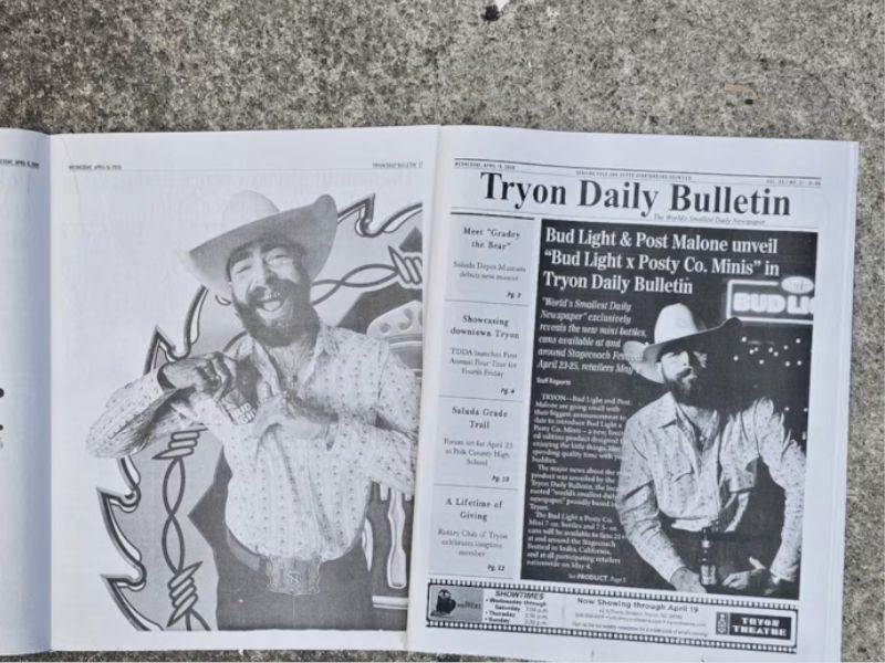 Bud Light y su portavoz, Post Malone, lanzan una campaña para presentar Bud Light x Posty Co. Minis: botellas de 7 oz y latas de 7.5 oz de edición limitada, diseñadas para disfrutar de las pequeñas cosas de la vida, como pasar tiempo de calidad con amigos. El cortometraje de la campaña, "The Smallest Bar in the West", muestra al músico y sus amigos dirigiéndose a un pequeño bar en medio de la nada después de que su autocaravana se avería. El proyecto de draftLine NY fue dirigido por Chris Villa, con producción de Kids Never Grow Old. Siguiendo con el espíritu de celebrar las pequeñas cosas, Bud Light presentó por primera vez las cervezas pequeñas en The Tryon Daily Bulletin, un pequeño periódico diario con sede en Tryon, Carolina del Norte. Malone da vida a la campaña en el desierto, en el festival de música Stagecoach, con una experiencia pop-up fuera del recinto.