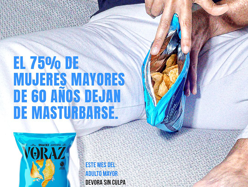 El 75% de las mujeres mayores de 60 años deja de masturbarse. Y, durante el mes del adulto mayor, la marca peruana de snacks Voraz, reconocida por su tono audaz e irreverente, lanzó su campaña Devorar sin culpas, de la mano de Bost Brand Accelerator.