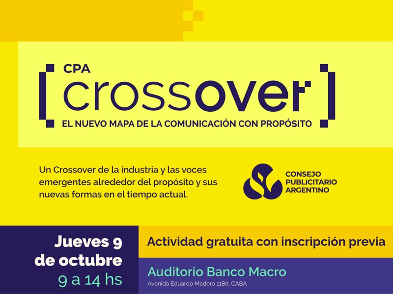 El Consejo Publicitario Argentino presenta Crossover CPA, un espacio para reflexionar sobre el nuevo mapa de la comunicación con propósito, donde se reunirá a ejecutivos/as, profesionales y líderes de comunicación, marketing y sustentabilidad de empresas, agencias y medios.