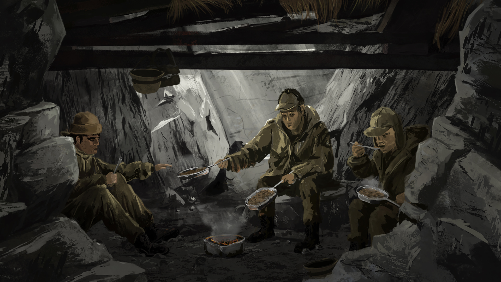 Mientras que Raúl Villafañe cuenta que una noche en donde no hubo bombardeos pudieron disfrutar de una charla y una comida compartida con sus compañeros.