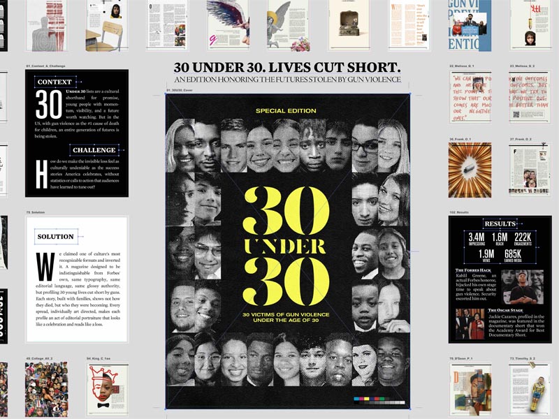 En lugar de crear una campaña tradicional, el equipo recreó todo el sistema de reconocimiento—una revista de 101 páginas que replica el diseño, el tono y la credibilidad de las listas que se admiran. Pero los protagonistas son distintos. Son 30 jóvenes asesinados por la violencia armada antes de cumplir 30 años.