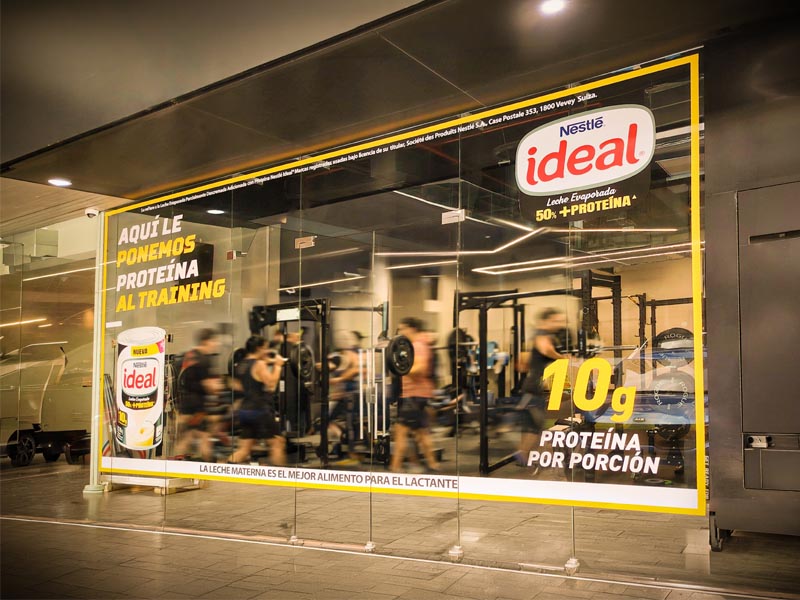 En el marco del lanzamiento de la nueva leche evaporada Ideal con 50% más de proteína, la agencia McCann Panamá lanzó una innovadora propuesta de Vía Pública con la campaña Protein Live Boards. El nuevo producto lácteo brinda 10 gramos de proteína por porción, lo cual la hace ideal para los deportistas. En ese contexto intervino las ventanas de espacios donde se practican distintas disciplinas como Crossfit, Gimnasios y Padel, convirtiéndolas en vallas vivas.