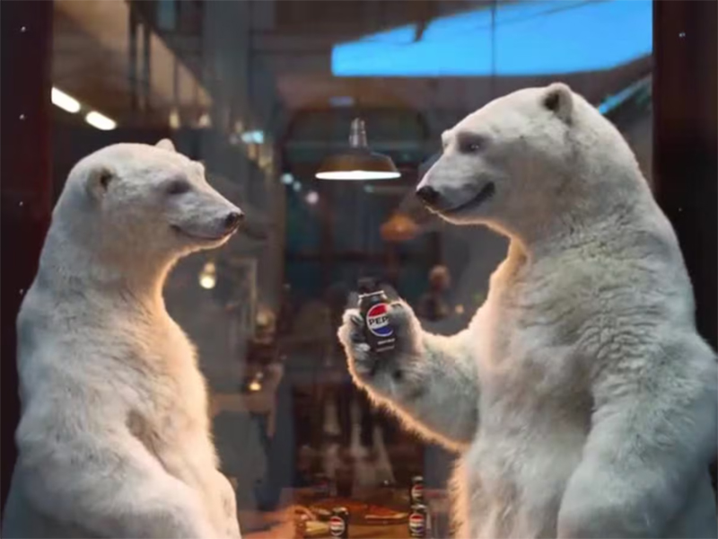 Un anuncio del Super Bowl para Pepsi Zero Sugar promociona una nueva victoria en el Pepsi Challenge, el programa de muestreo de décadas de antigüedad revivido en 2025 , utilizando un oso polar en conflicto que evoca a su rival Coca-Cola sin nombrarla nunca.